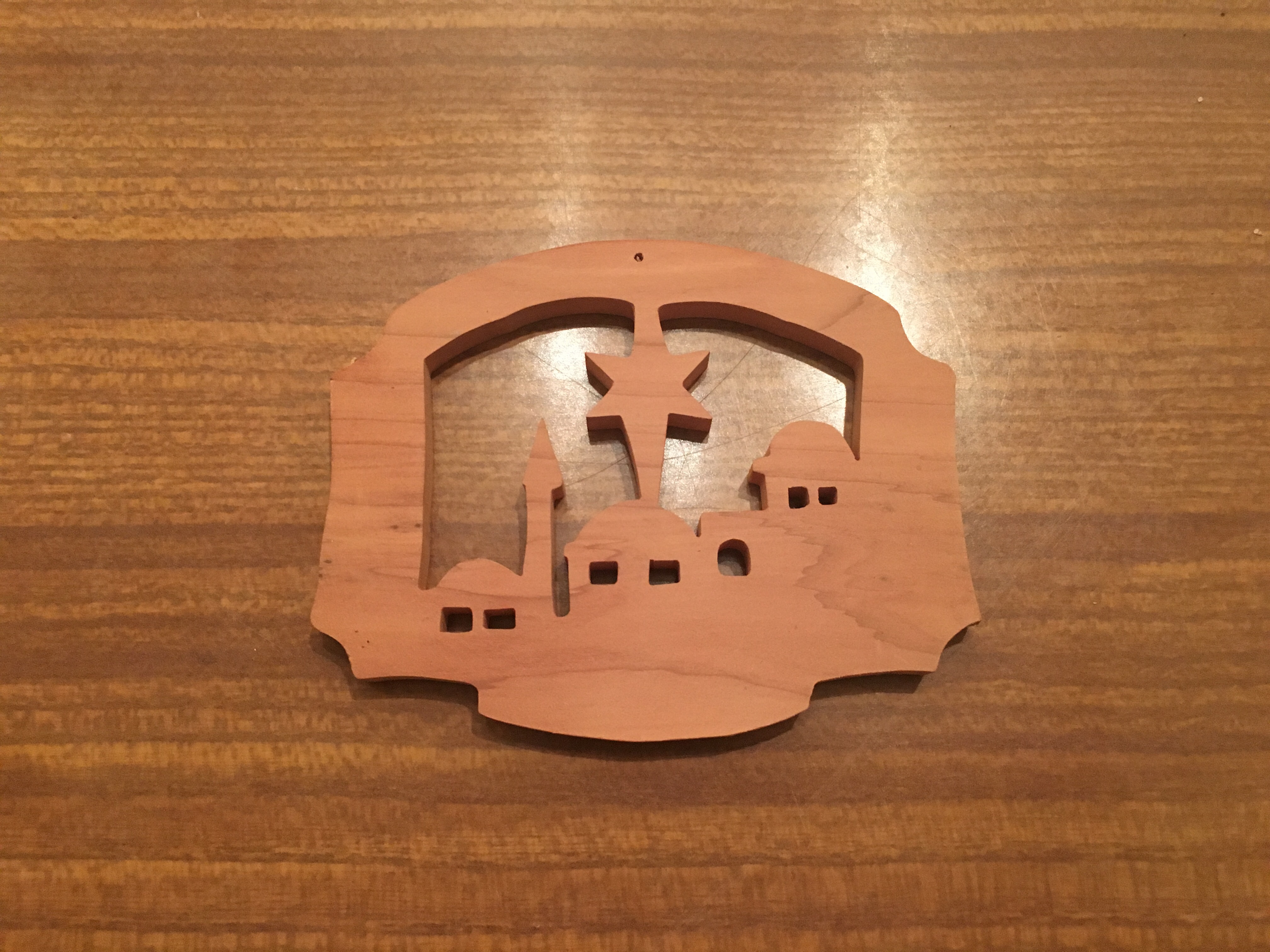 Den här lilla träprydnaden kräver en utvikning. Den är tillverkad av någon intagen på Louisiana State Penitentiary, eller Angola Prison, som det kallas, USA:s största högsäkerhetsfängelse, och Sofia och jag fick varsin med olika motiv när vi var på en gudstjänst i Brooklyn Tabernacle för ett år sedan. Pastorn berättade att de hade nära kontakt med fängelset, att många intagna blivit kristna och att alla i kyrkan – och det går in hur mycket folk som helst i Brooklyn Tabernacles lokaler – skulle få varsin träprydnad på väg ut som en hälsning från deras vänner i Angola Prison.