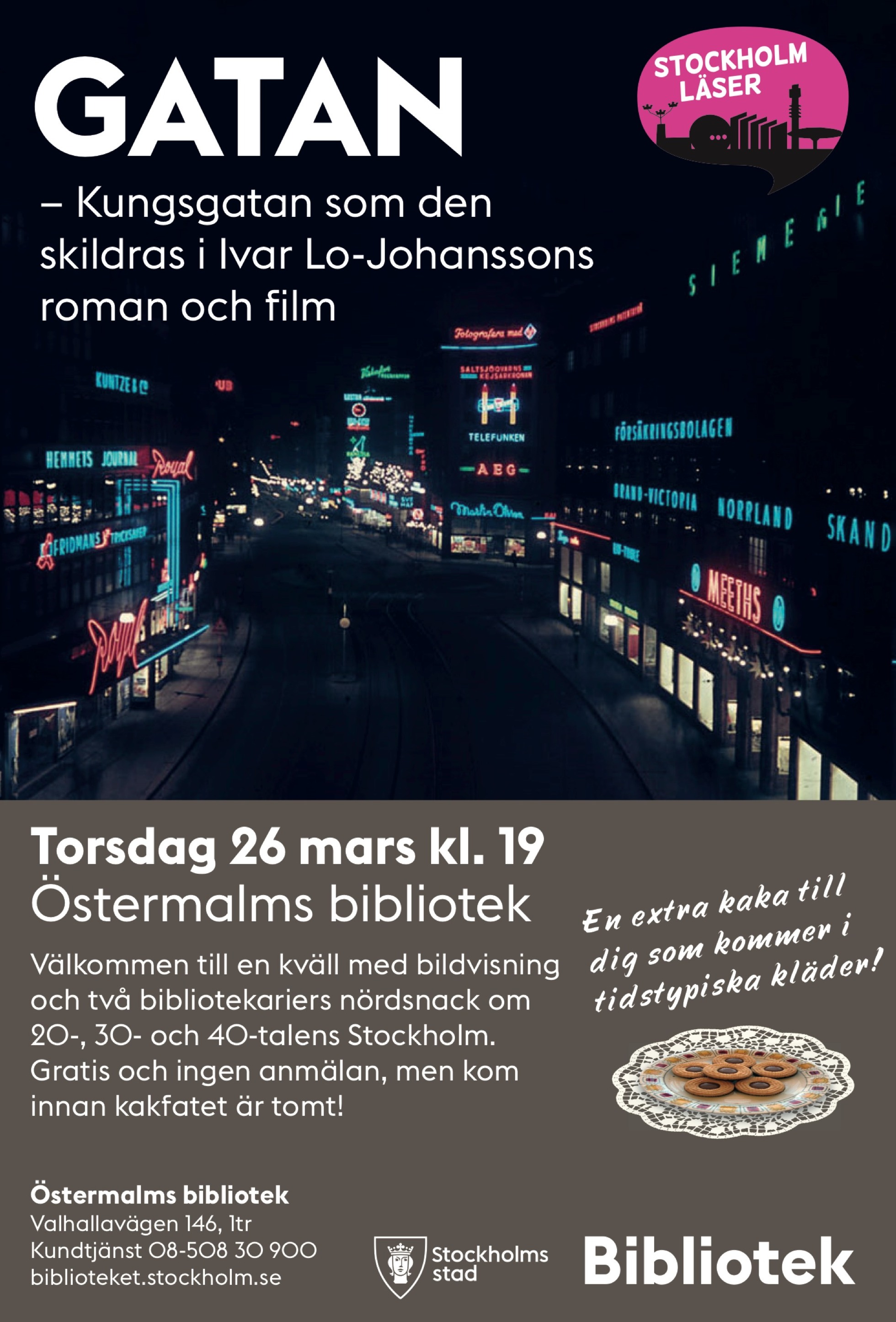 Tämligen oförberedd och idélös kom jag till Chriss på Salong Novo, där jag bokat tid för att göra en 30-talsfrisyr, men det var långt ifrån några problem med den saken, Chriss hade stenkoll och berättade att hon sett så mycket fram emot det här uppdraget och till och med hade pratat om det med sin man, som anklagade henne för att vara överengagerad i sitt jobb. Vågigt hår skulle man ha, och ganska kort, med eller utan hatt. Av två hattar hon tagit med hemifrån valde vi en och så fick jag en fejkat kort vågfrisyr. Det var ovanligt många kunder på plats i salongen och alla var nyfikna på vad som föranledde en så ovanlig makeover. Jo, två bibliotekarier har gått in för årets Stockholm läser-bok Kungsgatan till hundra procent och tänker nörda loss på 20-, 30- och 40-talstema inför publik – gissningsvis en handfull äldre damer – på tidskriftsavdelningen på Östermalms bibliotek. (Men de sistnämnda detaljerna sa jag inget om.)