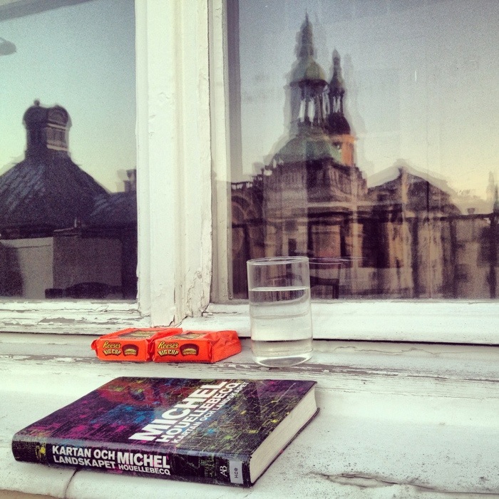 Jag tror man kan säga att gruppens åsikter utgick ifrån att romanen skulle vara mer som en roman och den visade sig vara alltför annorlunda. Den har belönats med det prestigefyllda franska Goncourt-priset och hyllats av recensenter för sitt språk och intressanta innehåll, och även om man inte håller med för fem öre (eller säg för tio euro, den mycket måttliga Goncourt-prissumman) finns det gott om aspekter att vända och vrida på. I korthet handlar boken om konstnären Jed Martin som möjligen är född samma år som jag, 1977, och som läsaren får följa under 2010-talet, i tillbakablickar till barndomsår och konstnärskarriärens början och fram till efter hans död, jag försökte räkna efter och fick bokens nutid till tidigast 2082. Jed lever i en närapå total ensamhet, som kanske är självvald och kanske betingad av ofrivilliga omständigheter i hans liv, men han gör vissa försök att närma sig sin far och så småningom även en karaktär vid namn Michel Houellebecq, som är författare och lever ett lika ensamt liv. Det är framför allt dessa tre eremitiska karaktärer som bjuder läsaren på sina uppfattningar om konsten och livet. Spelplatsen är för det mesta centrala Paris, vilket gör att Kartan och landskapet har beskrivits som en samtids- och framtidsvariant av den klassiska konstnärsromanen i klassiska parisiska miljöer.