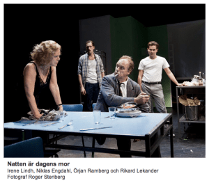 Kom över två fribiljetter till Noréns Natten är dagens mor på Dramaten och gick med Anna i går. ”En känslig och vacker pjäs om ungdom och sökande efter identitet”, säger Dramatens hemsida, en alkoholismframkallad kavalkad av anklagelser och fula ord på vrålvolym, säger jag. Men det är bara en beskrivning, inte ett omdöme. För att vara vrålkavalkad var den intressant, besvärande, gripande och faktiskt lite rolig här och var. Men mest beklämmande. Det finns ju familjer som ser ut så där, med en far som har supit sönder relationerna, ekonomin, vardagslivet, barnens uppväxt och hustruns förtroende.