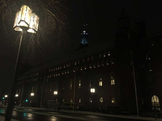 Jag började följa SVT-sändningen på bussen på väg hem från Lenas födelsedagsfika och kunde inte låta bli att hoppa av vid Stadshusets hållplats i inlevelsefrämjande syfte och sedan promenera de sista 10 minuterna hem. Därefter har jag suttit i soffan och tittat. Jag älskar Nobelfesten.
