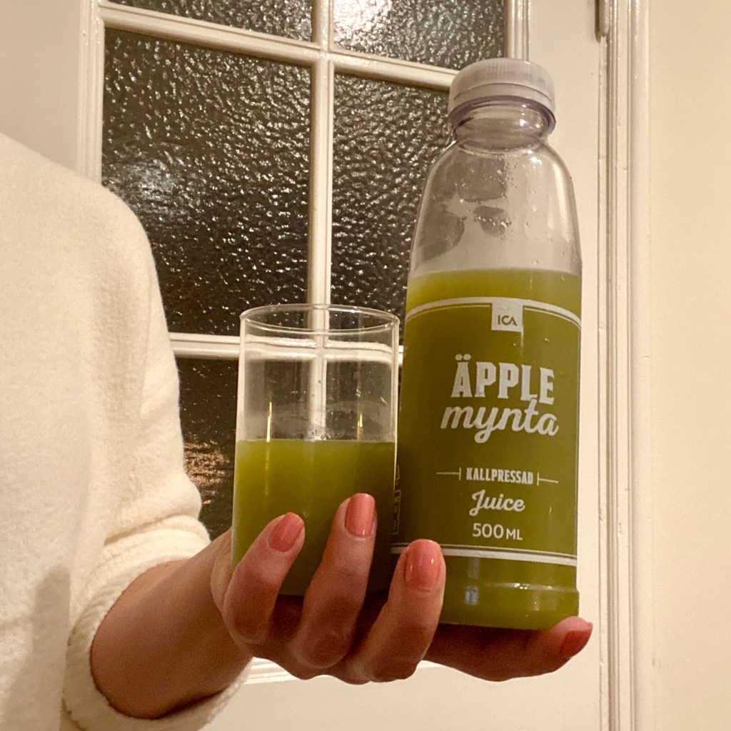 ICA:s gröna juice med äpple och mynta påminner mig om de goda juiceblandningar jag druckit på Wagamama. Tips: Pressa en lime och blanda med valfri mängd av juicen. Fruktigt fräscht, lagom sött. Den konstiga nyansen får man leva med.