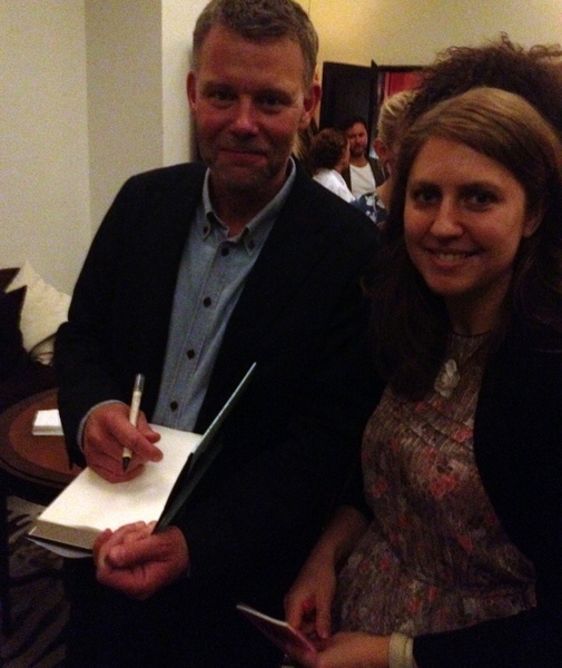 Så fort vi kommit in i rummet innanför entrén var det en kvinna som högg tag i oss och sa att nu skulle vi hälsa på Arne. När jag tog i hand och presenterade mig sa jag att jag precis läst Migrän. ”Va? Hur har du fått tag på den?” sa en glatt leende men förvånad Arne Dahl. ”Jo, från Lena på Novellix”, hann jag säga innan nästa person räckte fram näven och hälsningssekunderna var över.
