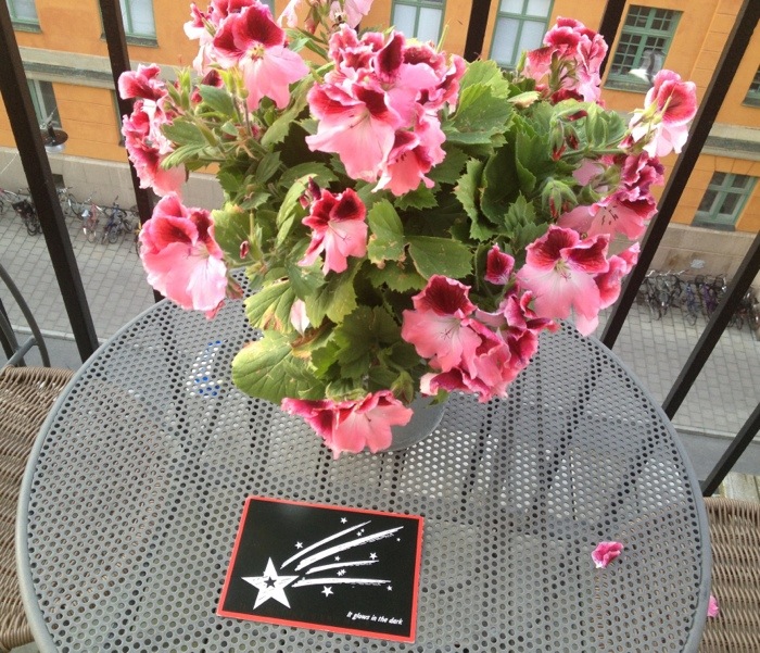 Hur vansinnigt det än var att stå och laga mat och göra matlådor precis innan jag åkte iväg till New York var det skönt att kunna langa fram kycklinggryta ur frysen nu när jag kom hem. Här väntade också en blommande balkong (föräldrarna och Sofia har delat på vattningsansvaret) och ett kort från Henrik och Charlotta. De checkade ut från Pod 39 Hotel på 39:e gatan dagen innan jag checkade in, typiskt nog. Vykortet är från favoritrestaurangen NoHo Star som jag tipsat dem om, väldigt kul att de kom dit.
