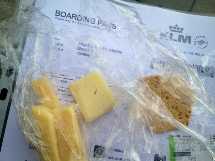 Incheckad och klar sitter jag utanför Terminal 2 och äter mitt livs tidigaste ostbricka. Vad gör man när man har en italiensk, en schweizisk och en fransk finost hemma? Inte reser man ifrån dem, i alla fall.