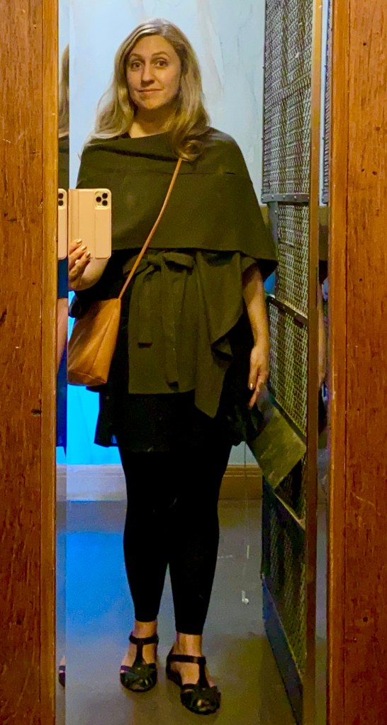 När jag köpte den här … koftan? tunikan? tygbiten? på Kilt i Christchurch på Nya Zeeland sa tjejen i butiken att jag kunde kolla klädmärkets YouTube-kanal och hitta tips på hur man knyter den. Nu har jag äntligen gjort det och kommit fram till ett intressant Robin Hood-aktigt sätt att bära den, inte ett av förslagen i filmen, men ett eget påhitt. (Apropå gårdagens långa inlägg om multifunktionalitet. Det här är ett plagg designat för kreativitet. Jag älskar det.)