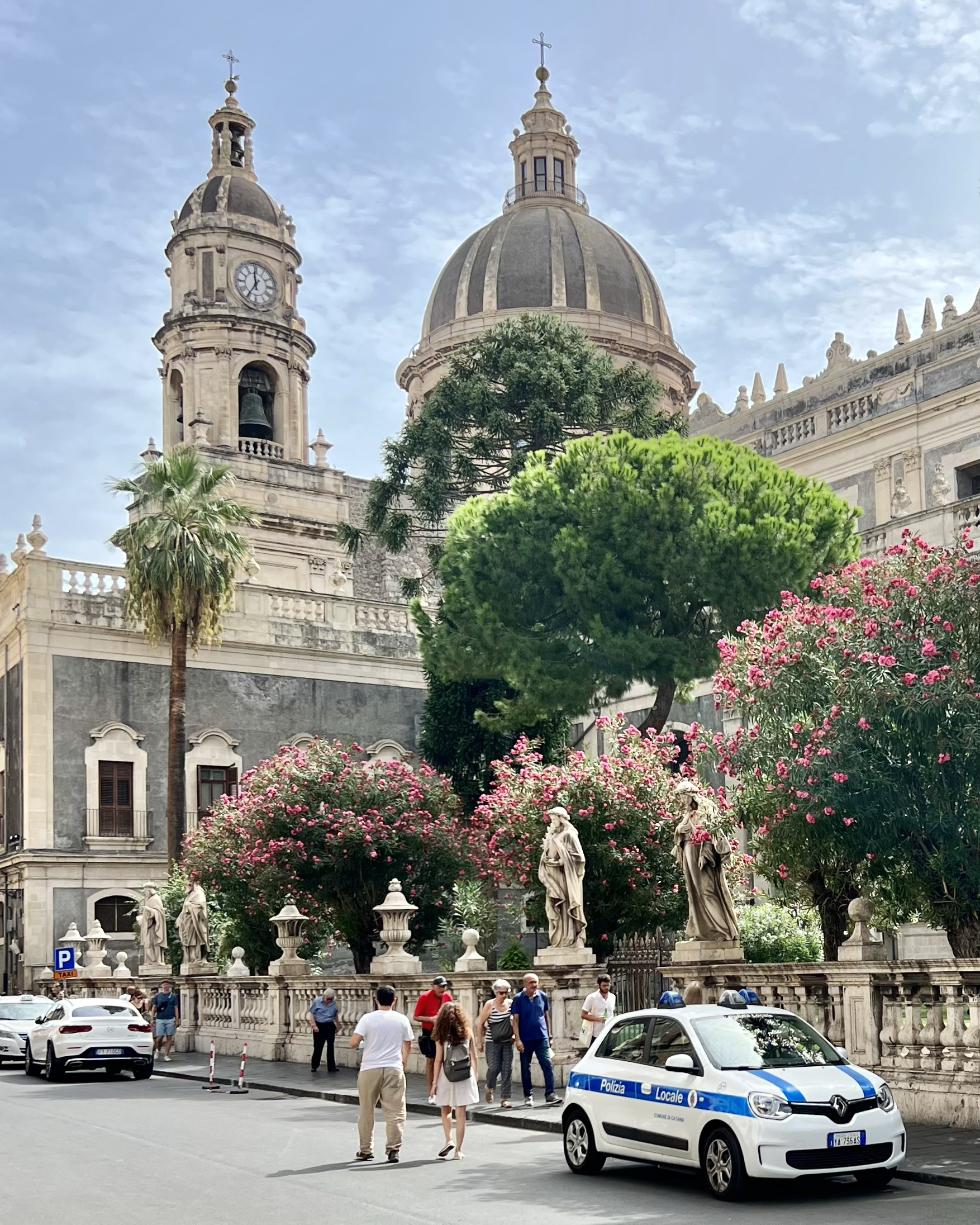En fontän på Piazza Vincenzo Bellini och Cattedrale di Sant’Agata.