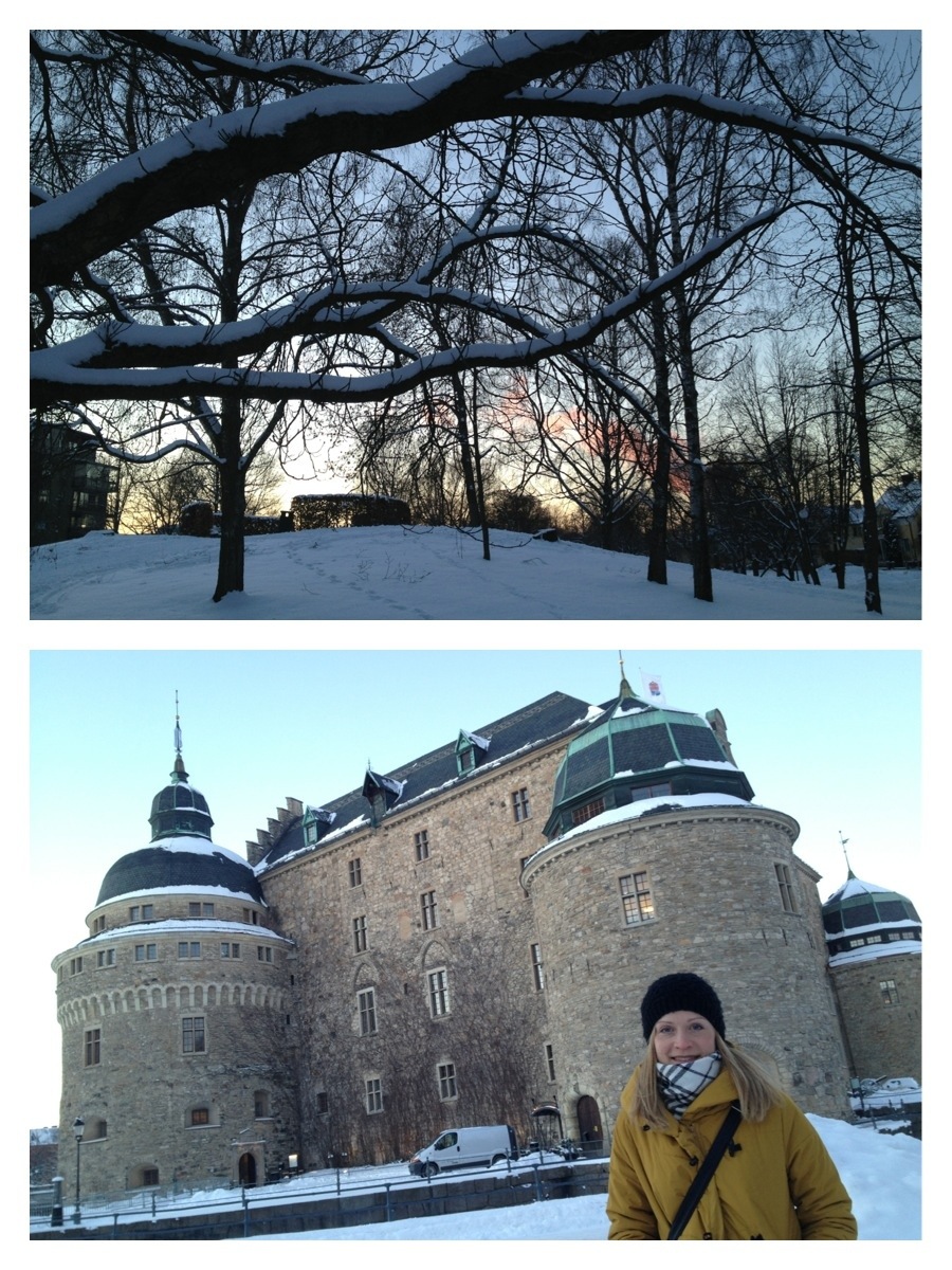 Vädret var kanonvackert, men vi var inte ute så mycket, utan hade ett fullspäckat program. Här är Martina och slottet. Nästa gång vi ses är det en helt annan garderob som gäller, åtminstone efter att vi landat.