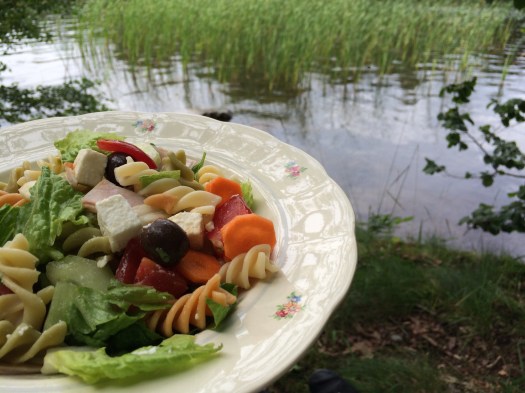 Framme vid Djurgårdsbrunnsviken. Pastasalladen serveras.