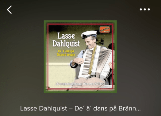 I morse hakade Spotify i min mobil upp sig och spelade enbart 30-talsmusiken från i går. Det gick inte att byta till något annat. Genom alla morgonbestyr låg mobilen och spelade glada bitar med Lasse Dahlquist.
