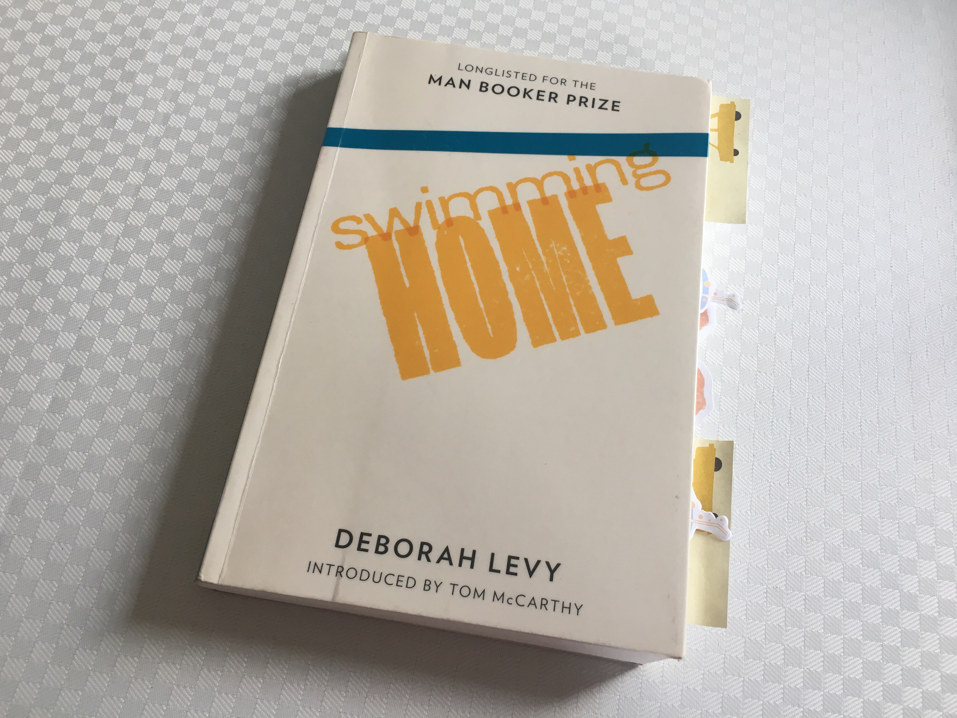 Swimming Home av Deborah Levy är kort men tät och full av berättartekniska idéer, lite för många, kanske. Särskilt intressant var det förstås att ha den som läsecirkelbok i Sture biblioteks ”Res i litteraturen”-serie en dryg vecka efter att ha kommit hem från Nice, även om jag avhöll mig från att kasta ur mig personliga associationer när vi satt sju personer på två utbredda filtar framför Kungliga biblioteket i Humlegården, med fikat i mitten och olika utgåvor av boken i händerna. Helena och jag hade läst den på originalspråket engelska – författaren är född i Sydafrika och uppvuxen i England – och alla våra cirkeldeltagare hade valt den svenska översättningen, Simma hem. På Helenas omslag var det en simmande kvinna, medan den bok jag hade – den ovan – var otroligt intetsägande. Men jag gillar ju det, när den bok man sett knappa men intressanta uppgifter om i bibliotekskatalogen visar sig ha ett tråkigt omslag och det faktiskt inte alls behöver tas i beaktande.