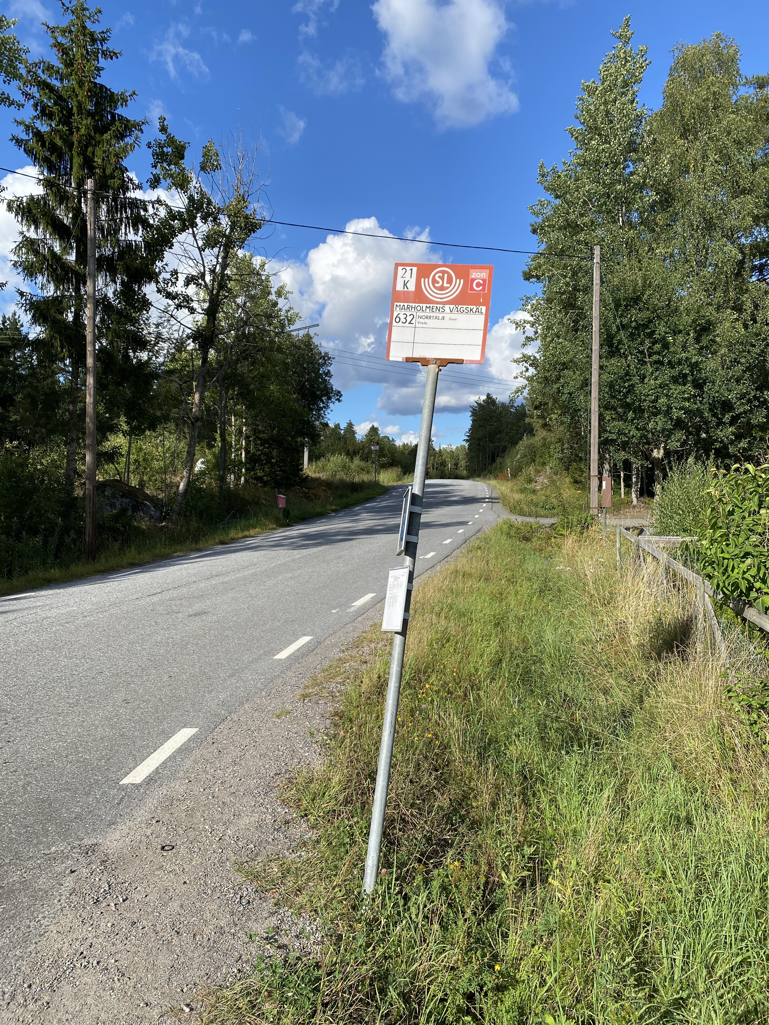 En tur till Marholmen en söndag är inte ett typiskt helgnöje för mig, så jag låtsades, som jag brukar i sådana lägen, att jag är på prao i någon annans liv, någon som kanske till och med lockas av tennis och äventyrsgolf och liknande aktiviteter som erbjöds på anläggningen. Sådana människor har ofta bil. För min personliga del roades jag mest av inslag som att på tillbakavägen ställa sig vid en gammalmodig SL-stolpe mitt ute i spenaten och vänta på buss 632.