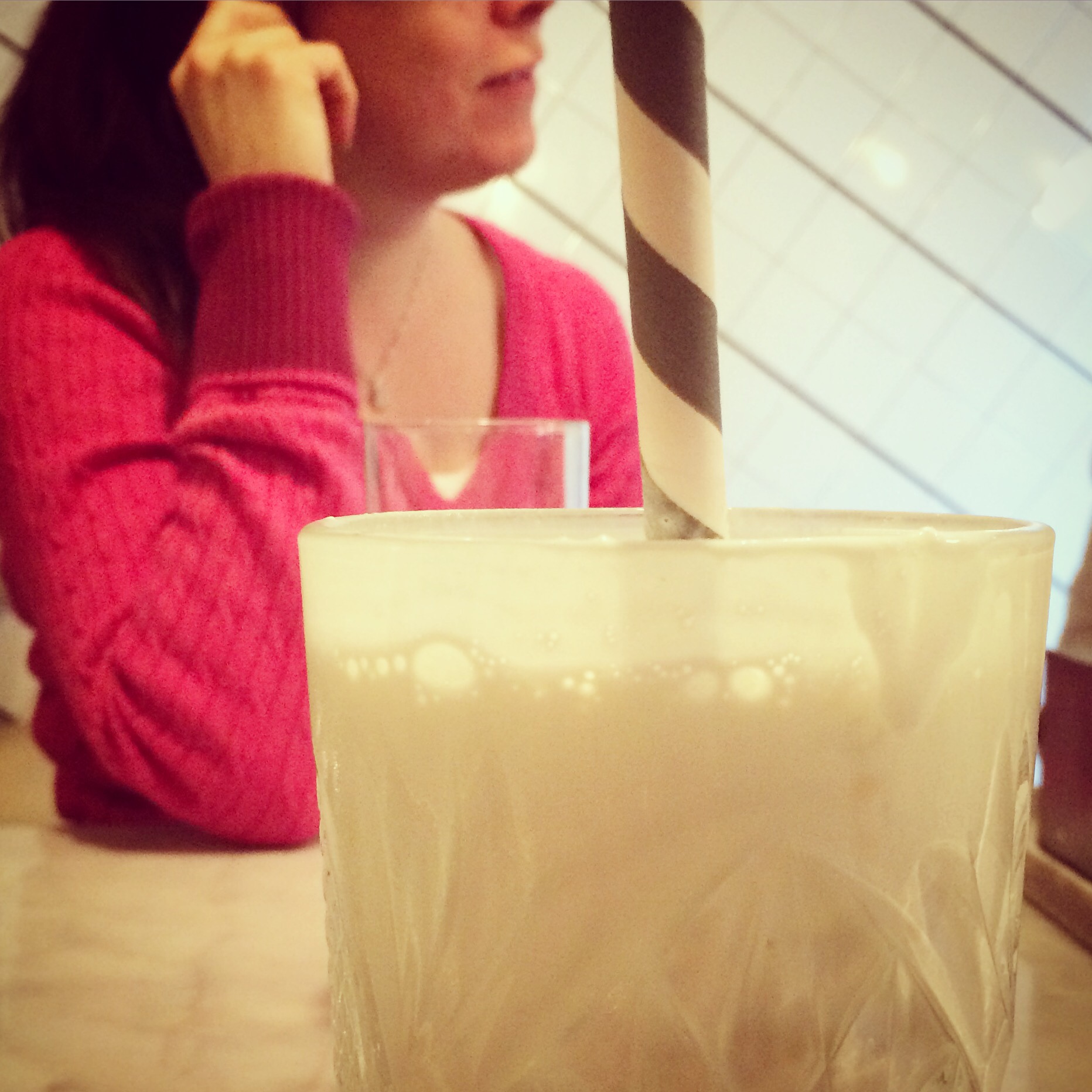 Och här hade jag gått och trott att jag skulle behöva jobba till halv åtta på valborgsmässoafton. Hade jag bara kollat upp saken hade jag sett att Sture bibliotek skulle stänga fyra, och med alla mina plustimmar kunde jag utan problem gå tidigt (för tro inte att vi har kortare arbetstid bara för att vi råkar ha lite mindre öppet). Nu skulle det bli valborgsfirande, med start på Phil’s Burger på Fleminggatan, med Lotta, Jonas, Simone och Simones tillresta vän Helena. Tog en kokosmilkshake för att riktigt get the party started.