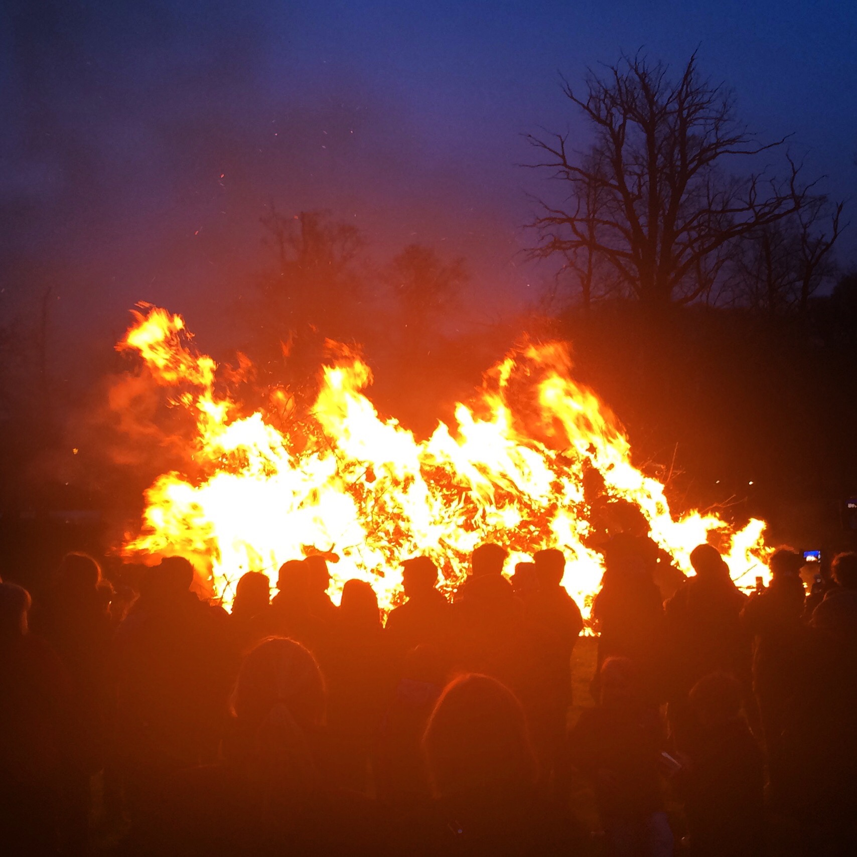 Vi tappade Jonas på vägen, tyvärr, men resten åkte vidare till Drottningholm och dess majbrasa. Det var hemskt trevligt förra året, då hela hemgruppen firade valborg i Huddinge, men det blir lätt lite gräll tivolikänsla på en köpcentrumnära öppen plats, med alla möjliga försäljningsstånd och gastande från en scen. I Drottningholmsparken fanns inte en enda kaffetermos, vilket inte hade skadat i och för sig, men vad skönt det var med bara ett gräsbeväxt fält, mer eller mindre kala träd, lagom mycket folk och en stor eld.