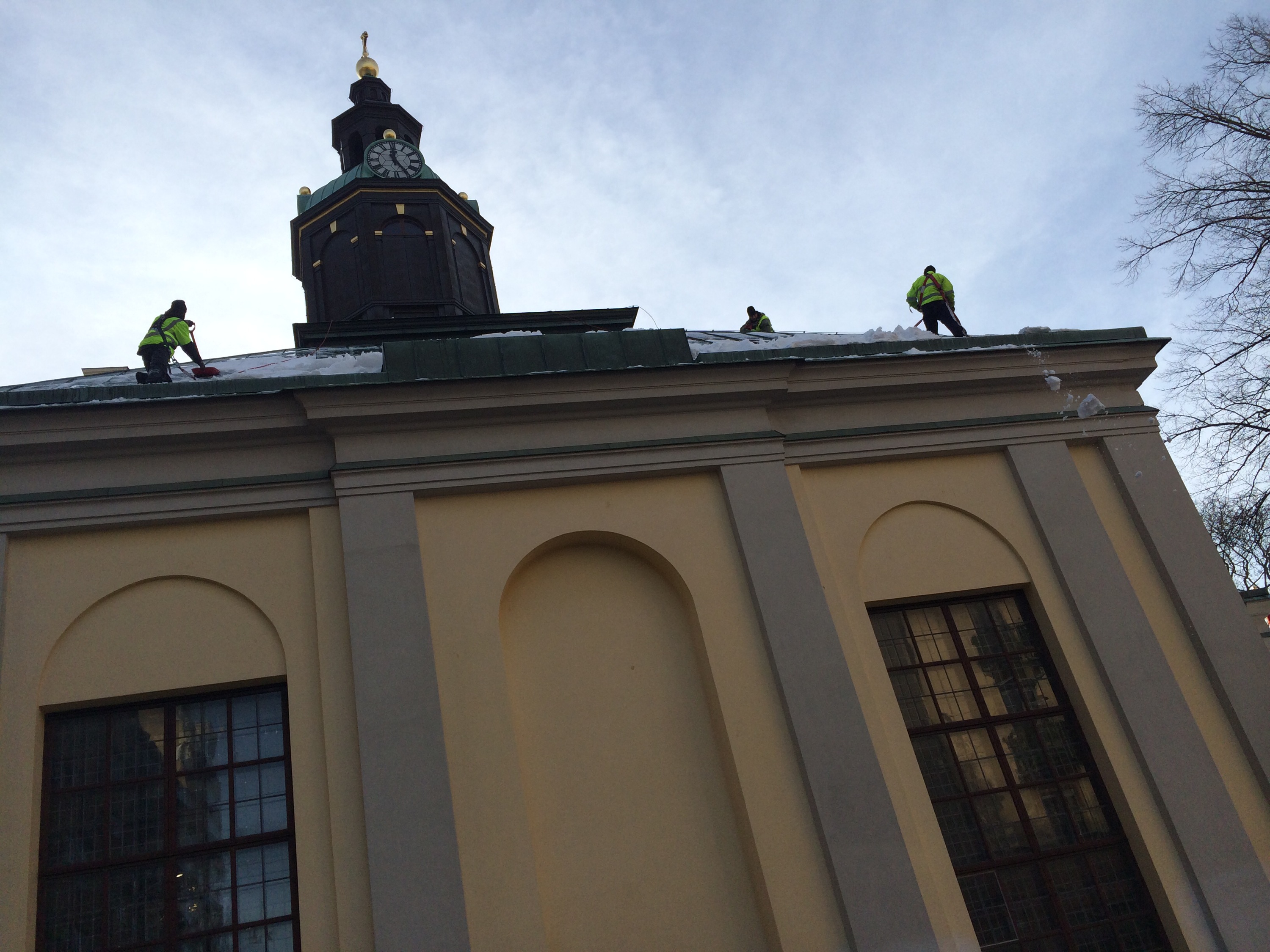 Undrar om man kan praktisera som höghöjdssnöröjare, eller hitta någon annan anledning att följa med upp. Jag vill också se stan från Kungsholms kyrkas tak.