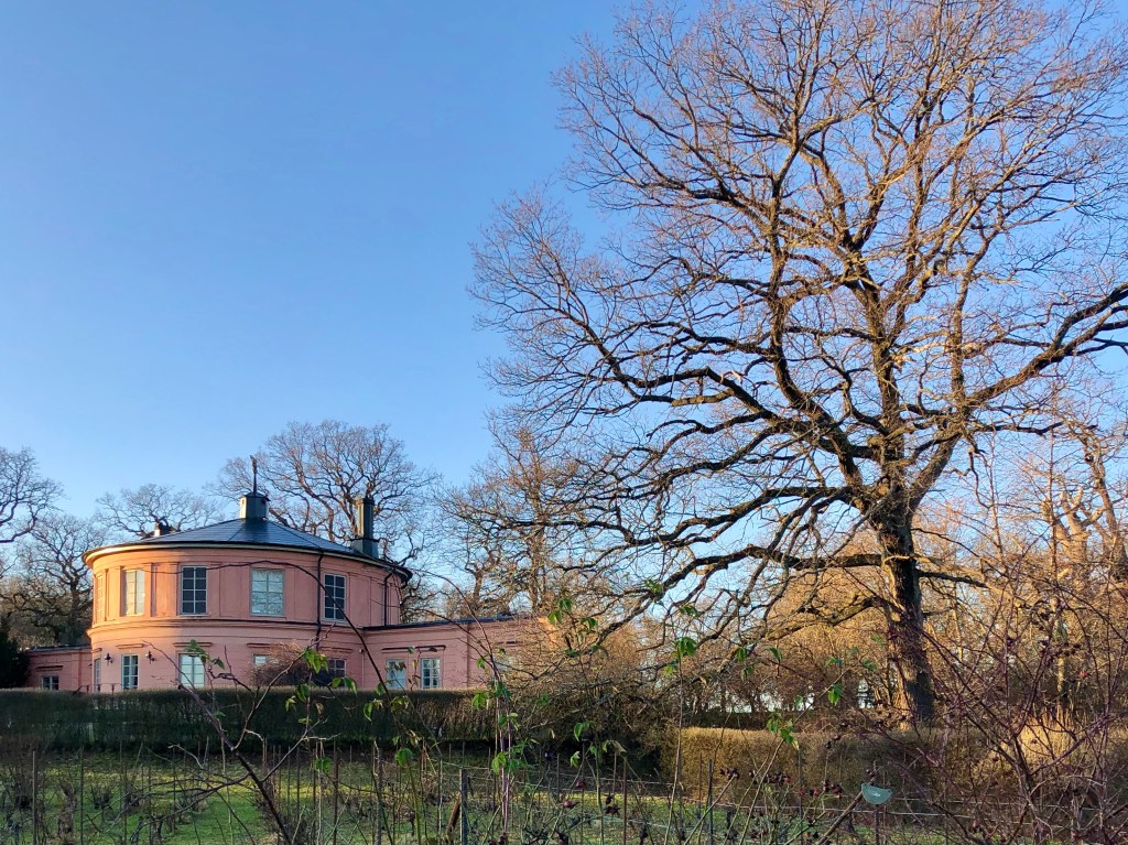J och jag behövde lite sol och några tusen steg och gick direkt från gudstjänsten i Korskyrkan till Djurgårdsfärjan, trängde oss ombord, åkte över och gick på luftiga gångvägar bort till Rosendal, där vi återigen befann oss i ett tätt kluster av stockholmare och Stockholmsbesökare. Solabstinensen är stor. (Och själv saknar jag snön mycket mer än solen. Det är tidig februari och jag har ännu inte gett upp hoppet.)
